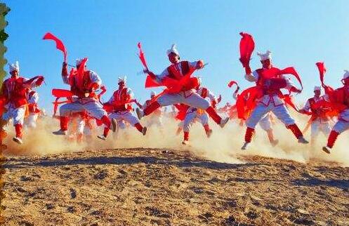 一捶起来就发狠了,忘情了,没命了!百十个斜背响鼓的后生,如百十块被强震不断击起的石头,狂舞在你的面前。骤雨一样,是急促的鼓点;旋风一样,是飞扬的流苏;乱蛙一样,是蹦跳的脚步;火花一样,是闪射的瞳仁;斗虎一样,是强健的风姿。黄土高原上,爆出一场多么壮阔、多么豪放、多么火烈的舞蹈哇——安塞腰鼓!