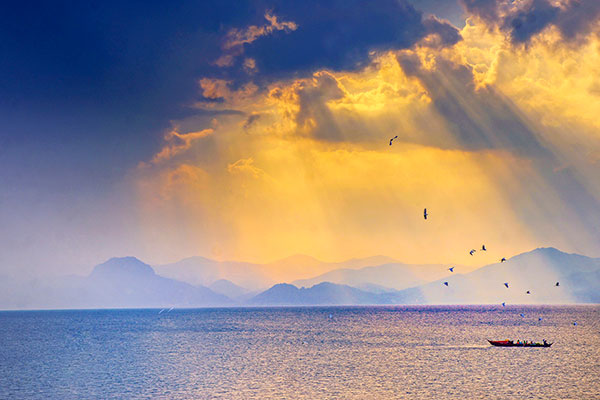 五日平明,良往。父已先在,怒曰: “与老人期,后,何也?”去曰: “后五日早会。” 五日鸡鸣,良往。父又先在,复怒曰: “后,何也?” 去曰: “后五日复早来。” 五日,良夜未半往。有顷,父亦来,喜曰: “当如是。” 出一编书,曰: “读此,则为王者师矣! 后十年兴,十三年,孺子见我济北榖城山下黄石⑦,即我矣!”遂去,无他言,不复见。旦日,视其书,乃 《太公兵法》也⑧。良因异之,常习诵读之。