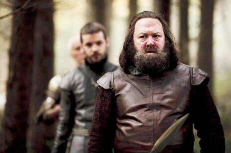 奈德再次见到劳勃时,他的腰围也和身高同样惊人。在赢得王冠之后,痛失所爱的劳勃过度沉湎于美食酒色,起码胖了几十公斤。如今一团粗黑如铁丝的胡子遮住他肥胖的双下巴,但没有任何东西可以掩盖他突出的小腹和凹陷的黑眼圈。
